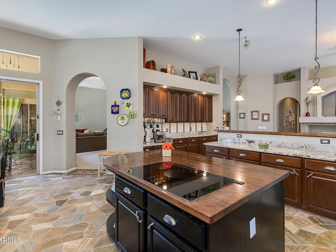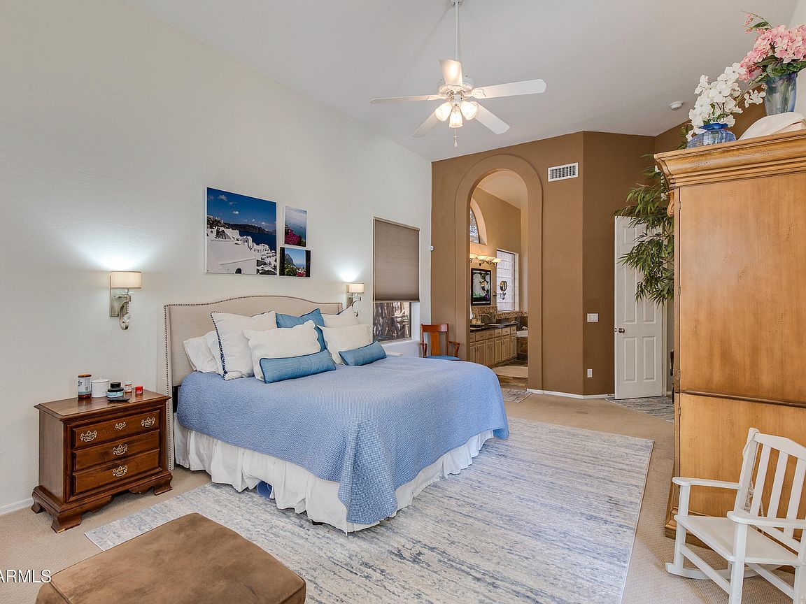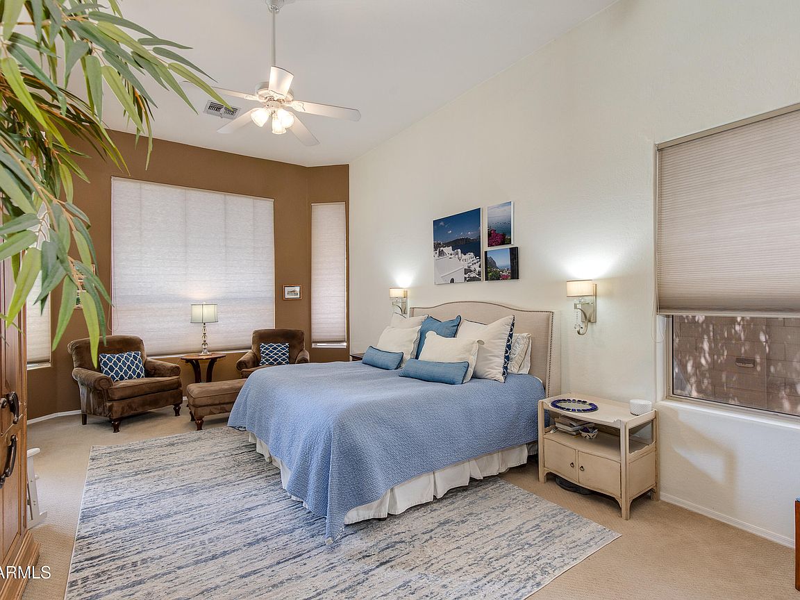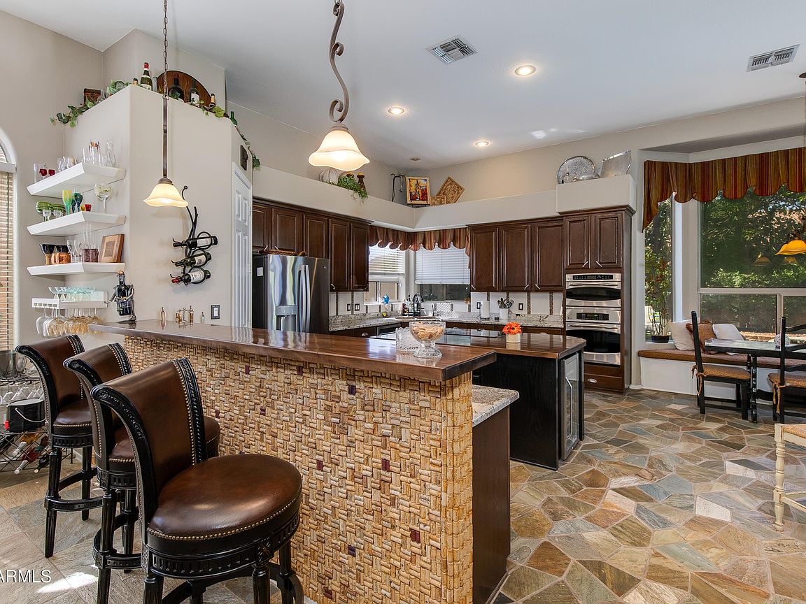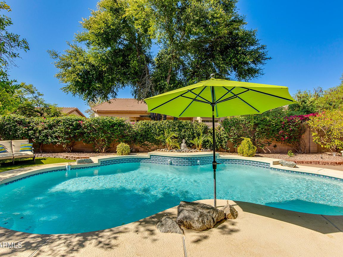 Beautifully updated home in Desert Ridge with a backyard that feels like a private, and lush oasis within the desert. Property has been meticulously maintained and updated throughout the years. The entire house has sprawling ceilings and the kitchen is a chef and entertainers dream with ample space to cook and host simultaneously. Primary suite is huge and offers a private entrance to the backyard and pool. Enjoy the ample variety of citrus and plants in the backyard. Everything about the home is unique and charming!
